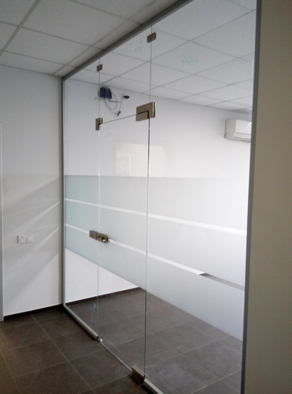 Вхідна група з одними дверима являє собою конструкцію зі скляної поверхні. При закритті утворюється суцільна стіна. Такий варіант оформлення приміщення найбільш популярний для офісів та різних організацій, але може застосовуватися і в квартирі. З його допомогою створюється перегородка, яка не обтяжує приміщення, а робить його візуально більш просторим і світлим. Таким чином, вхідна група з одними дверима дозволяє розділити приміщення на різні зони. Завдяки цьому в офісі можна робити окремі кабінети. Існує безліч варіантів оформлення – прозорі, матові або з нанесенням малюнків. Перший варіант створює повністю відкритий простір, а другий дозволяє зробити більш приховане приміщення. Зображення стануть відмінним елементом декору, вони додадуть інтер'єру оригінальність і індивідуальність. Використання цільноскляної конструкції відрізняється: